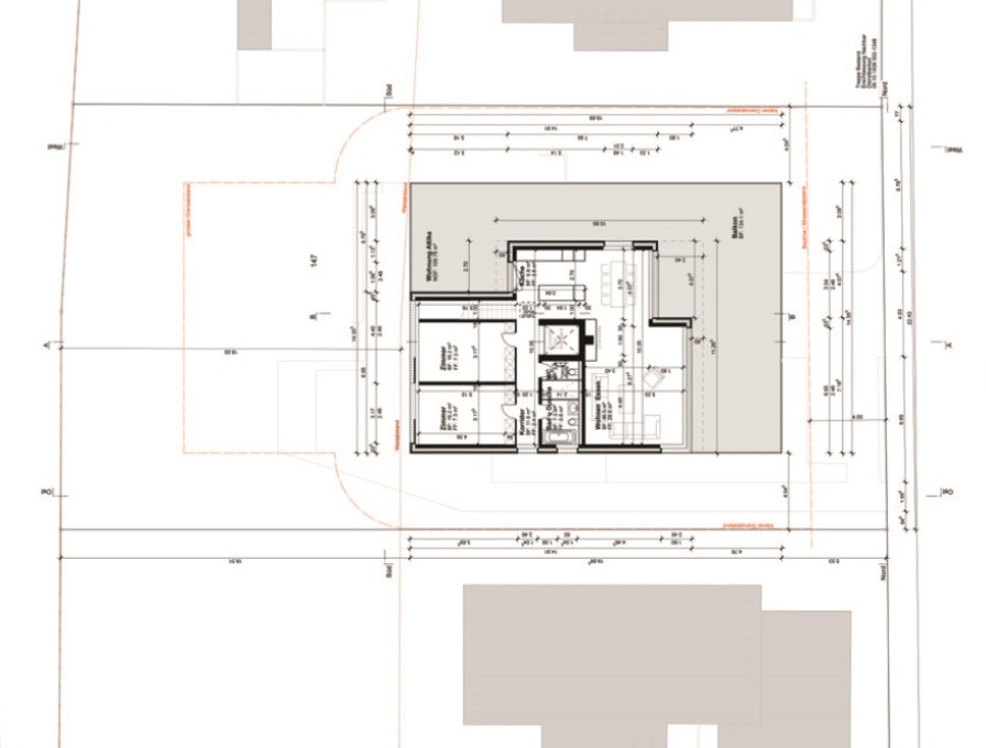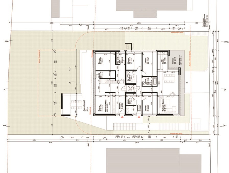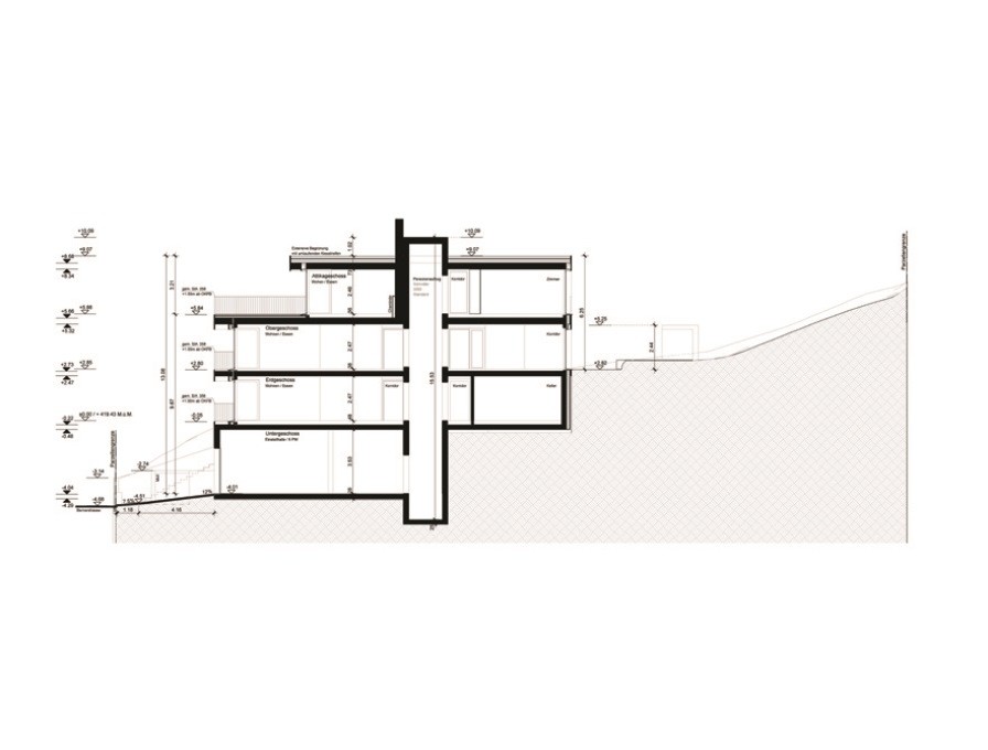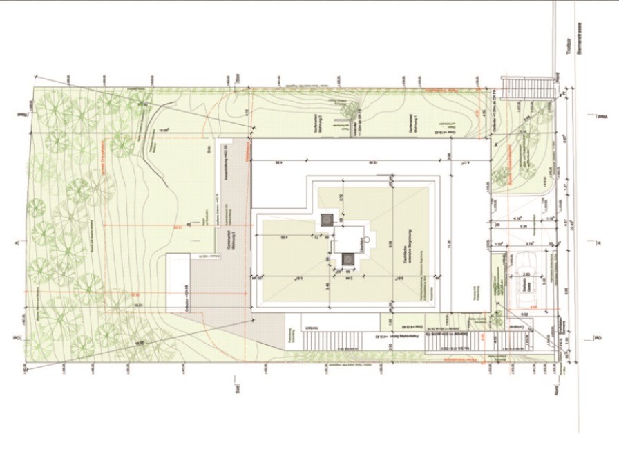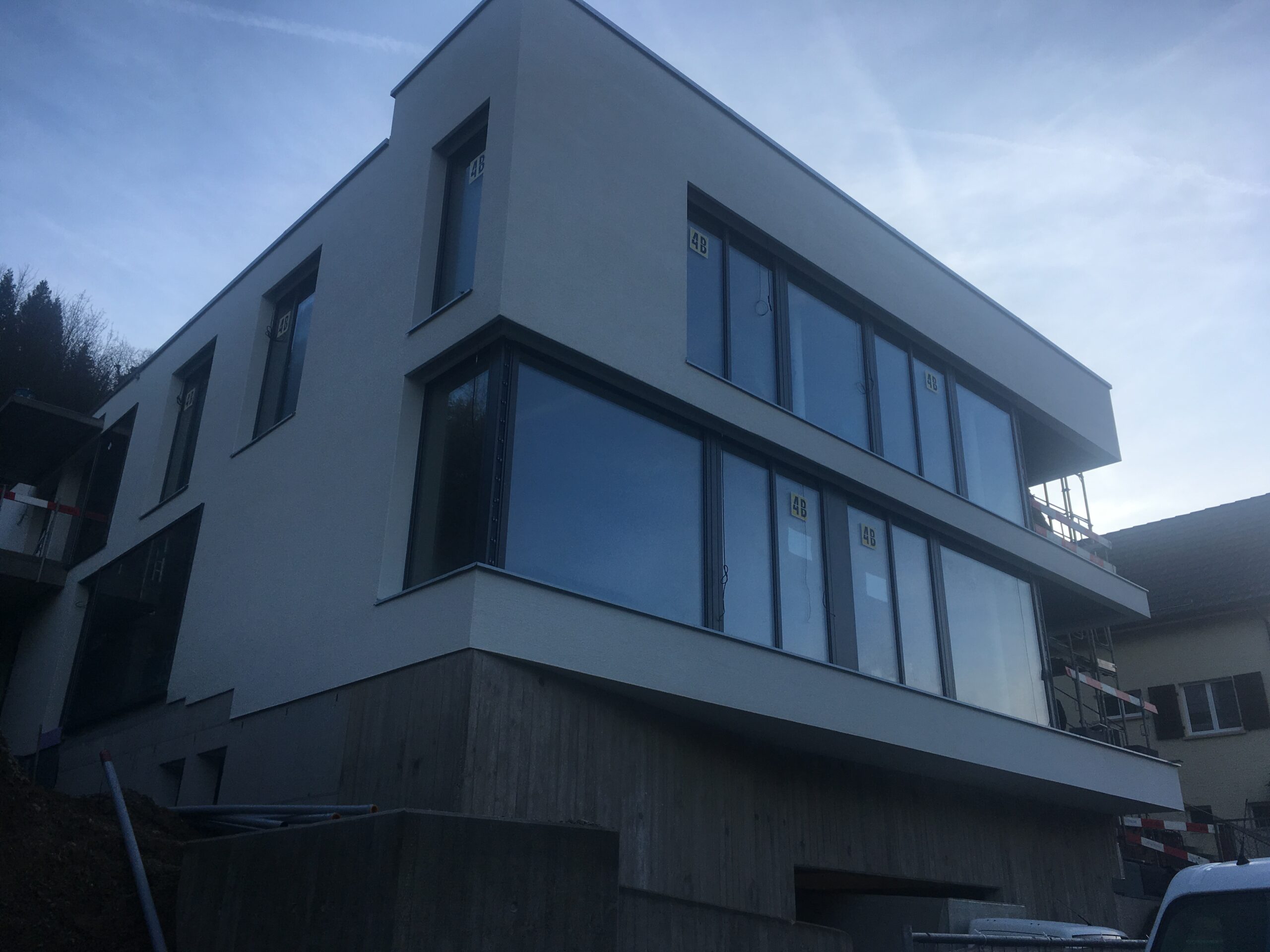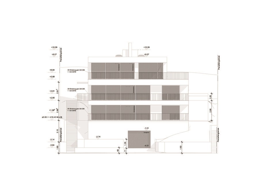 Neubauprojekt eines Mehrfamilienhauses mit Einstellhalle für drei Wohnparteien.