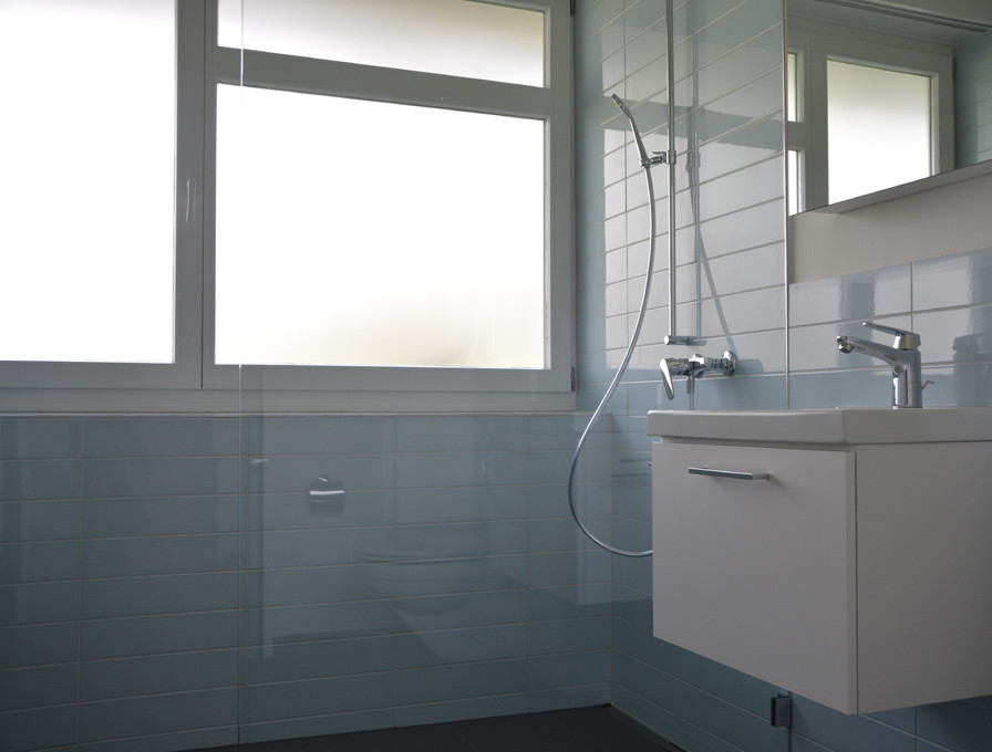 Altersgerechte Umgestaltung Bad mit stufenlos begehbarer Dusche.