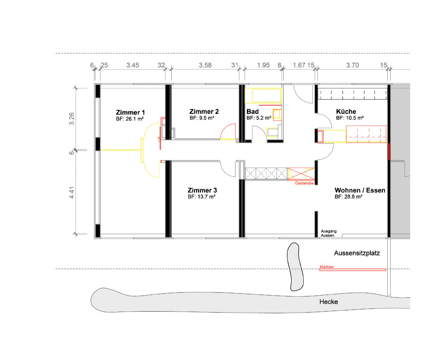 Durch öffnen und verschliessen verschiedener Wände Anpassung des Grundrisses an moderne Bedürfnisse.