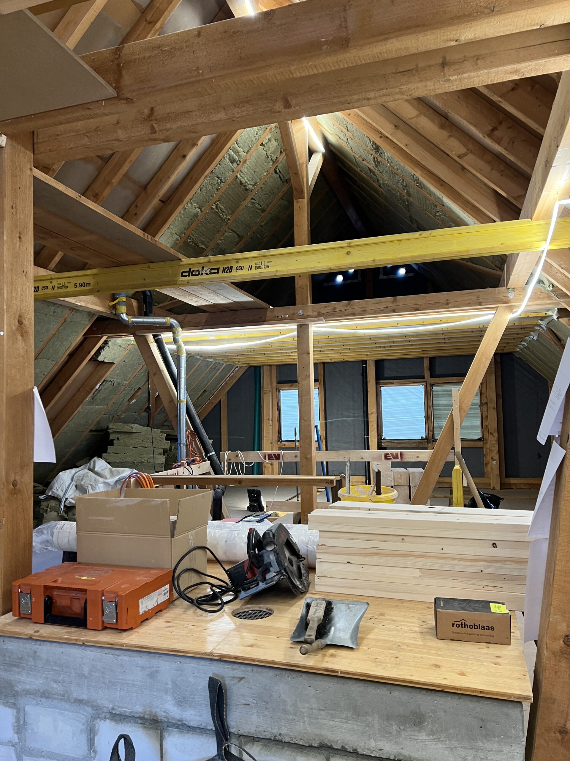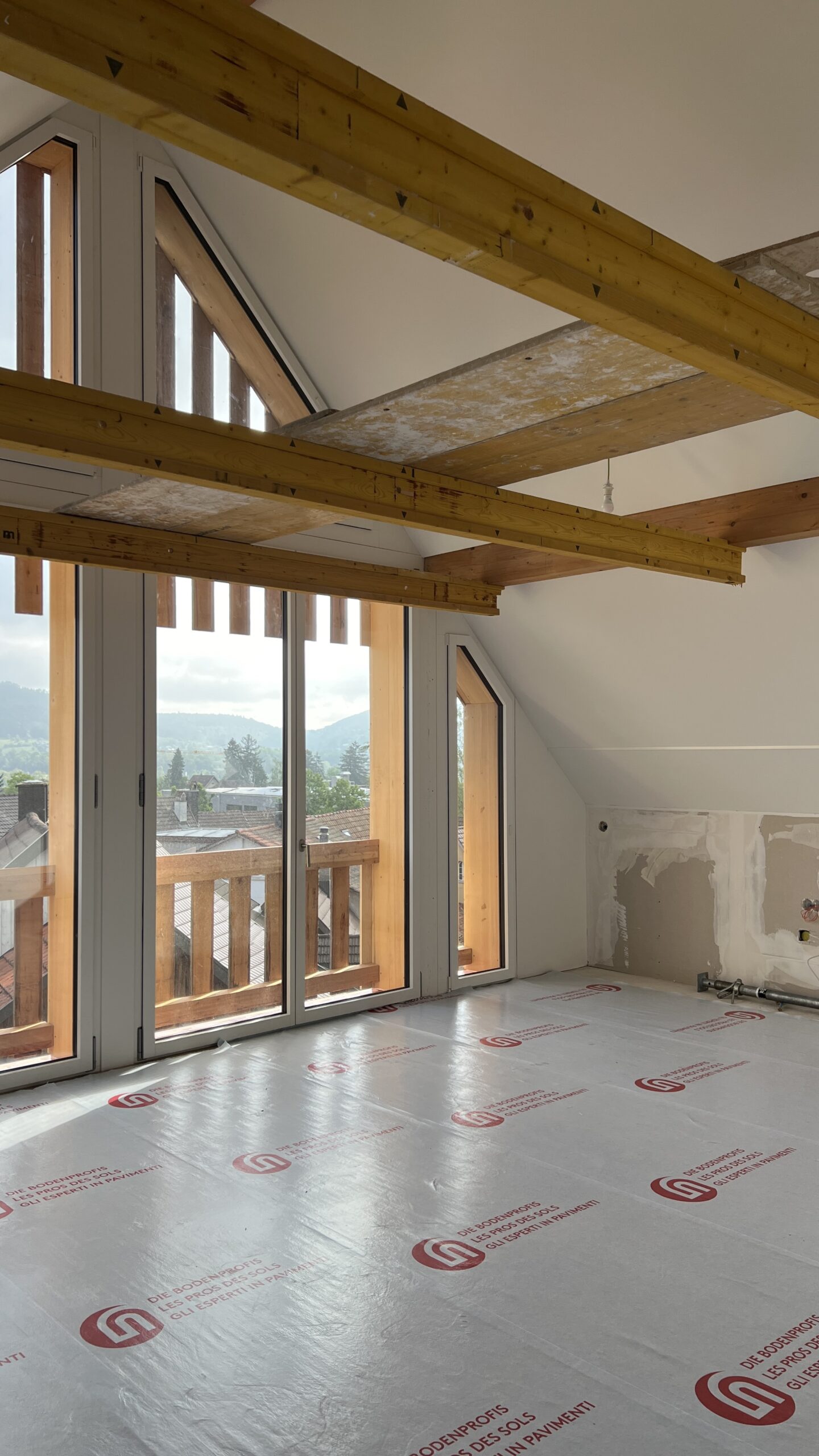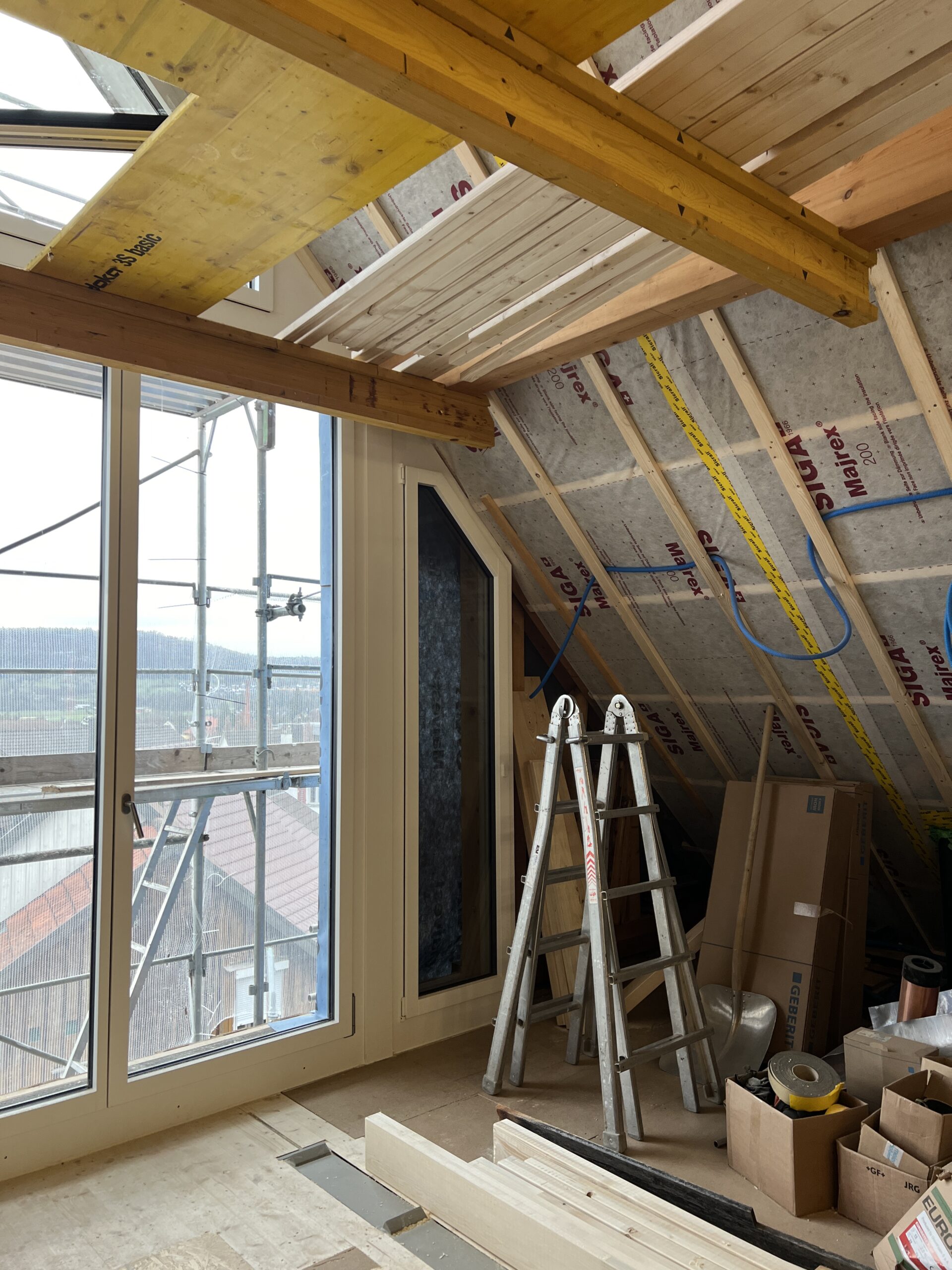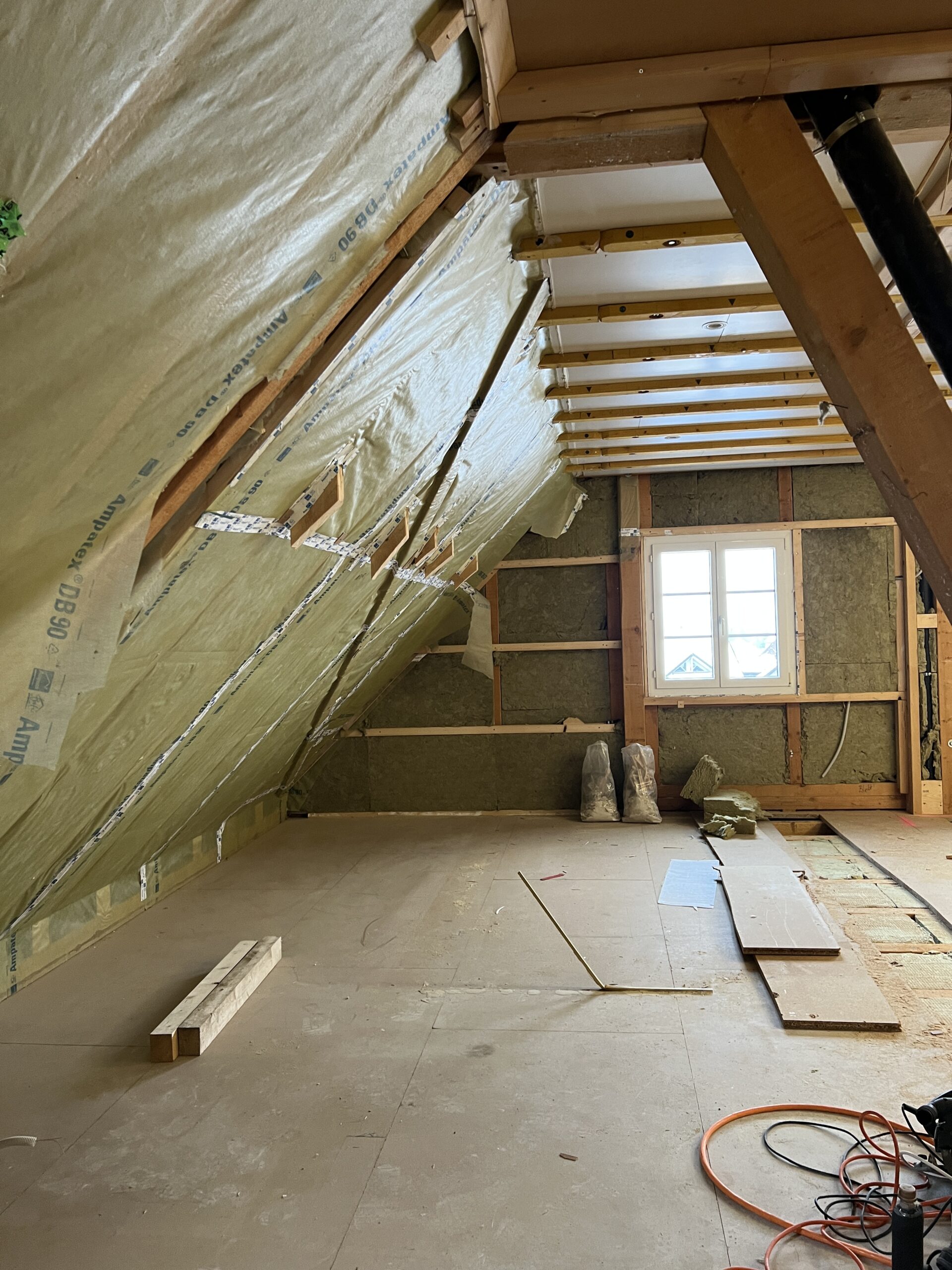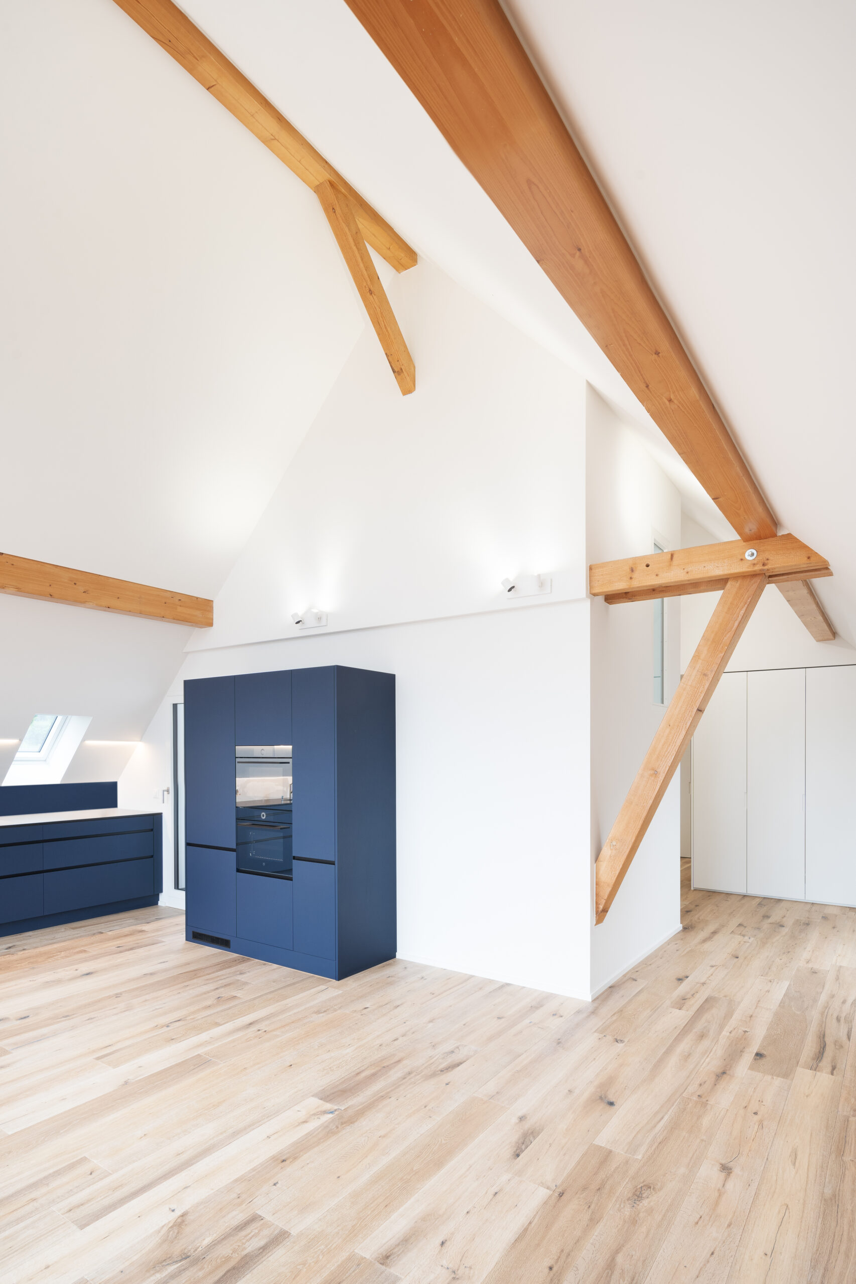 Dachstockausbau in einem denkmalgeschützten Mehrfamilienhaus.