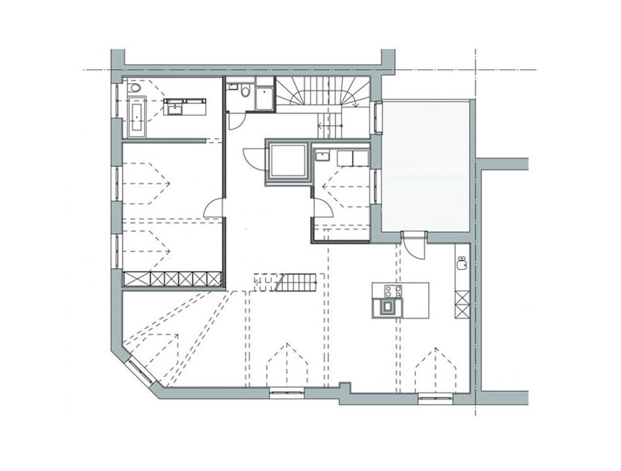Sanierung von 4 Wohnungen und Ausbau des Dachgeschosses in einem Mehrfamilienhaus.