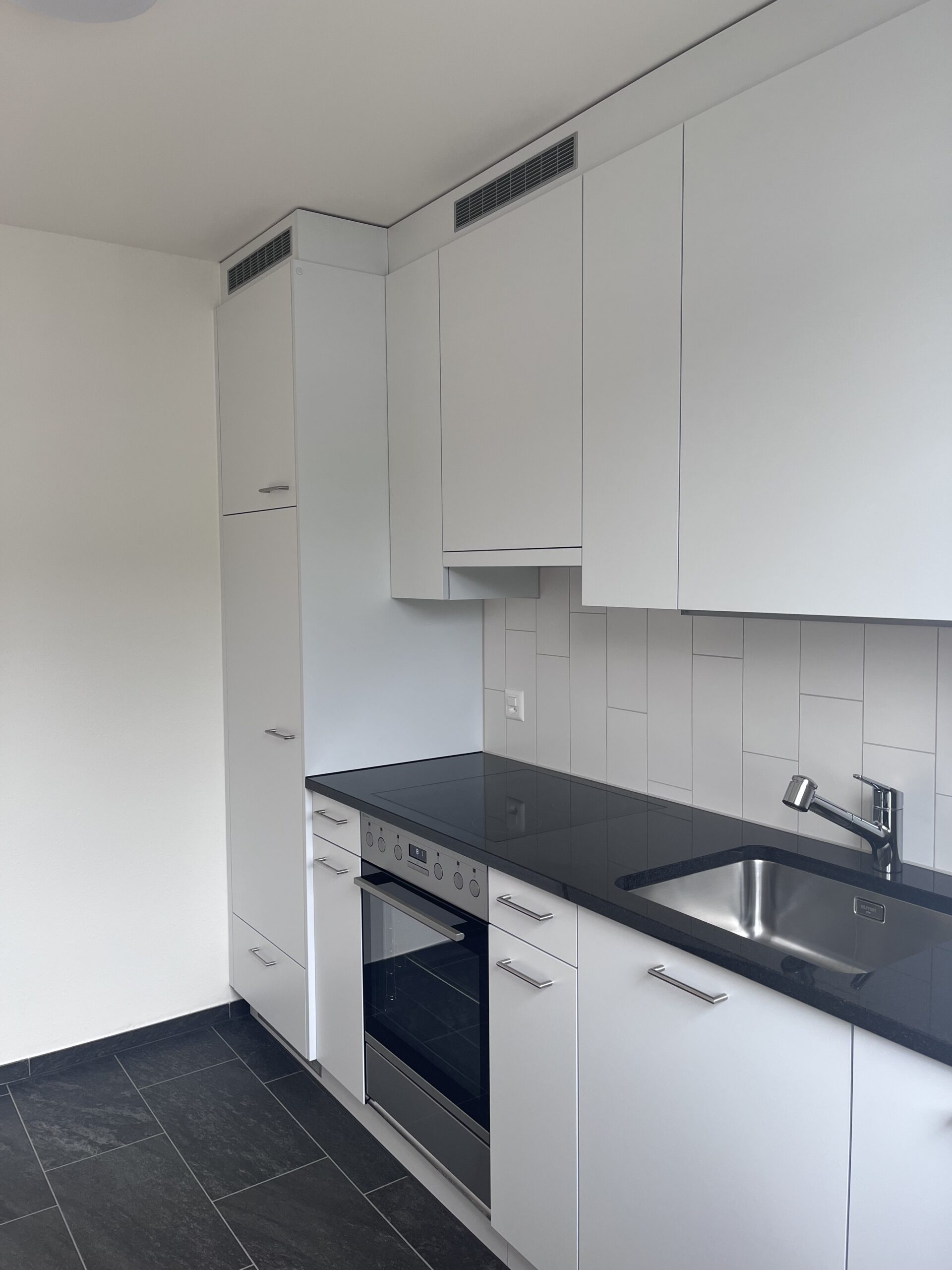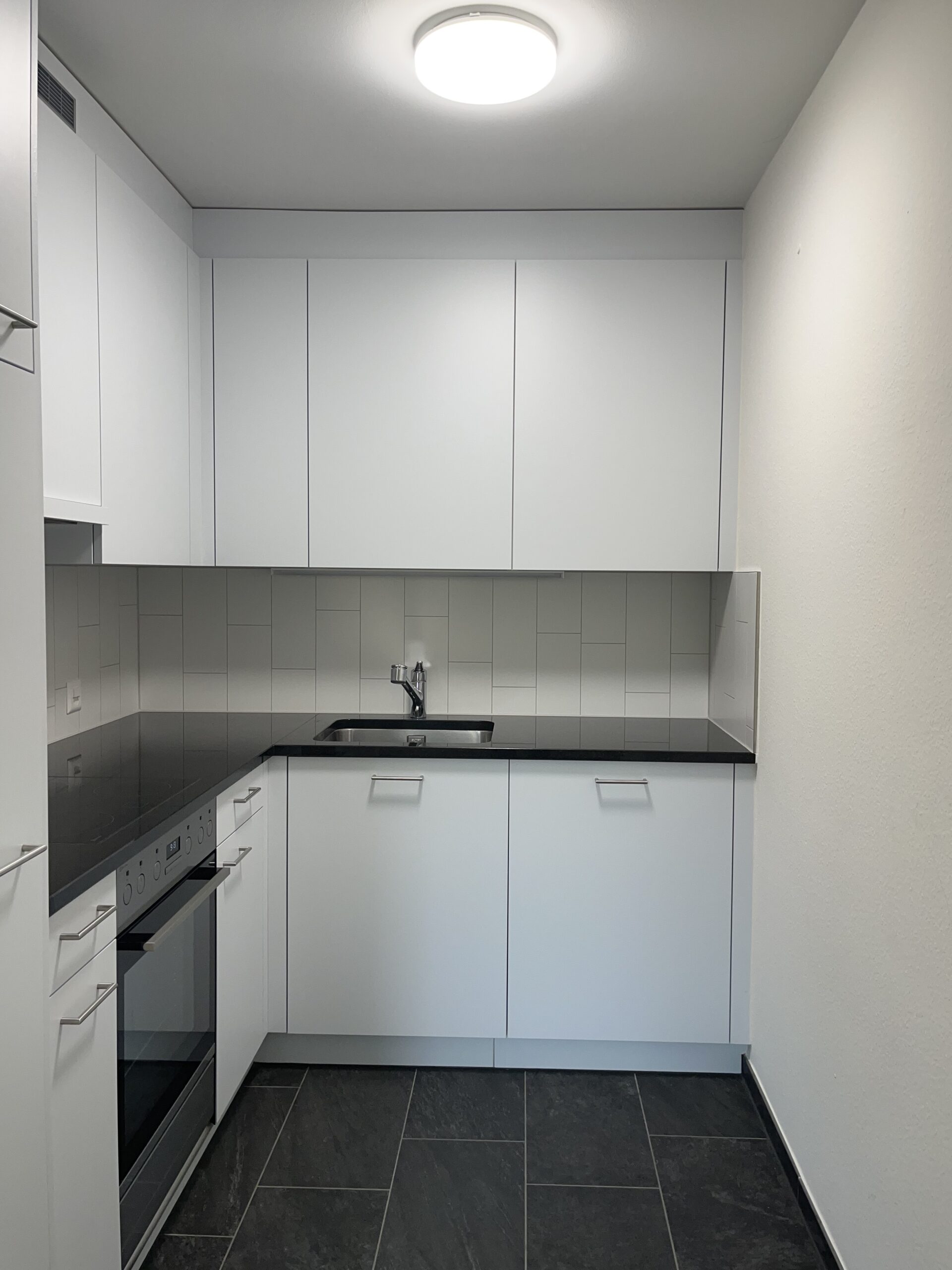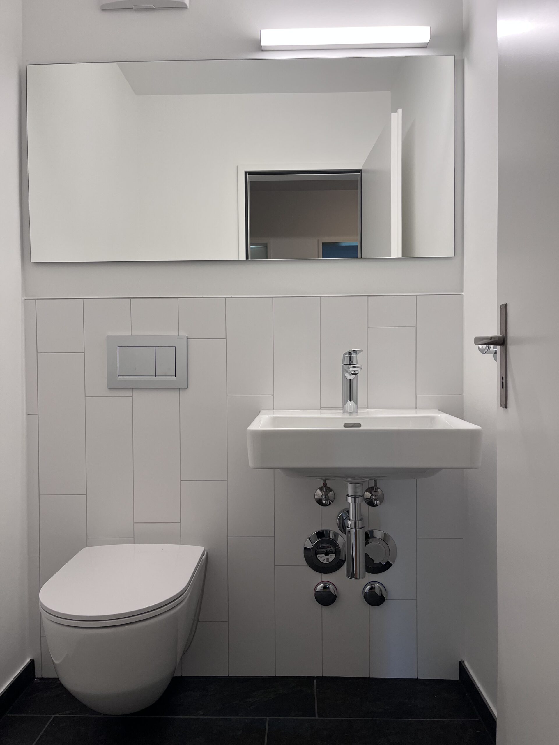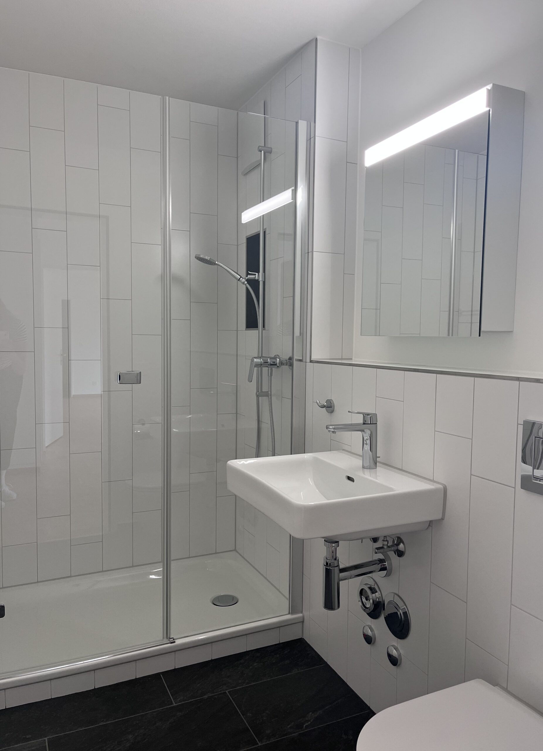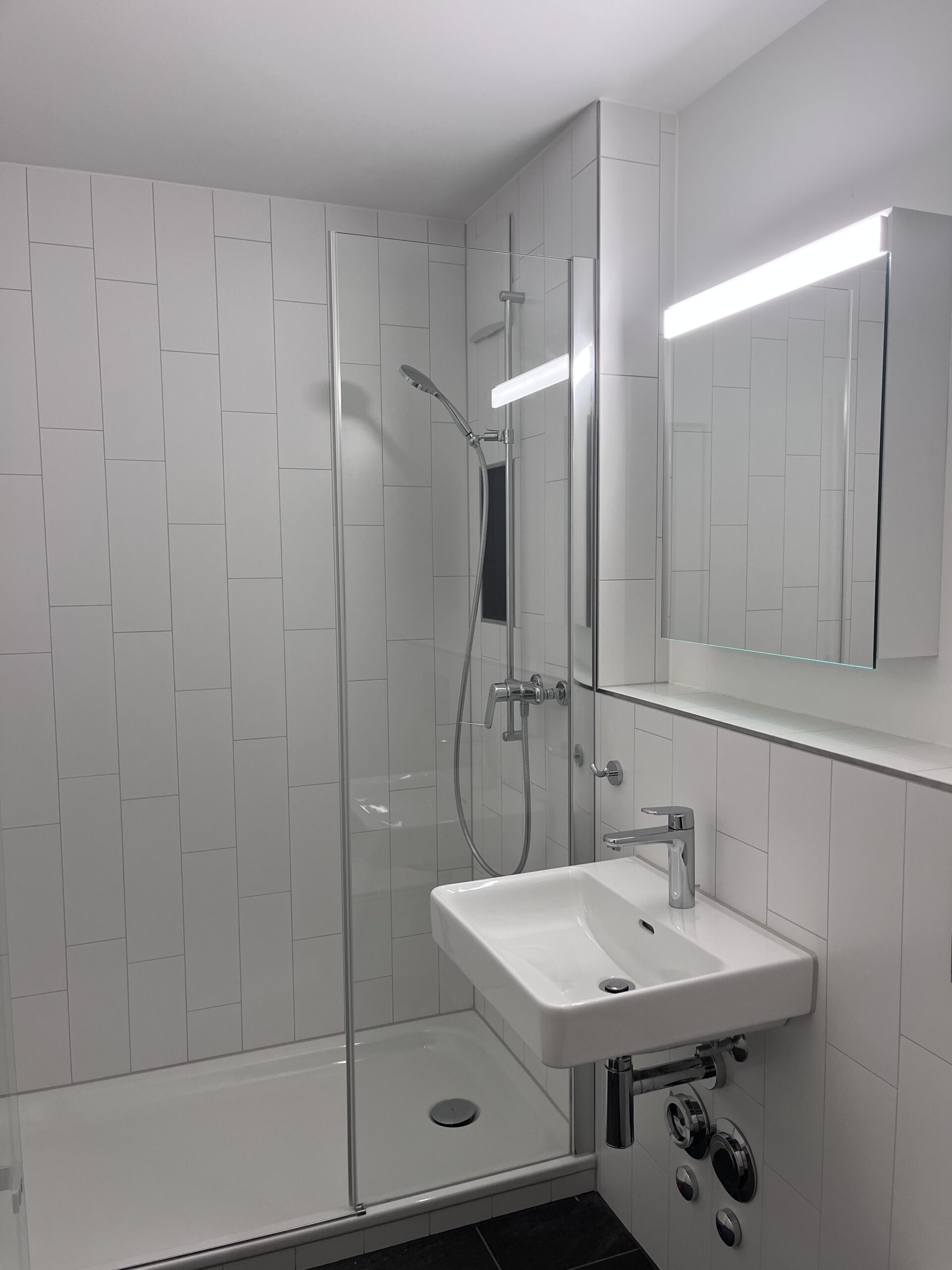 Erdbebenertüchtigung der Einstellhalle, Balkon- und Strangsanierung mit neuen Küchen und Bädern von 57 bezogenen Wohnungen. Die Wohnungen waren bewohnt.